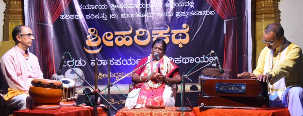 As a part of the joint collaboration of Harikatha Parishat (R), Mangaluru, Akhila Karnataka Kirtana Parishat (R), Bengaluru and Shri Hande Dasa Pratishtana (R), Karkala, under the auspices of paryaya Shri Palimaru Matha to present Harikatha Jnana Yagna continually for a period of 60 days, Smt.Nagalakshmi of Maisooru delivered a harikatha recital on “Sugreeva Pattabhishekha” at the madhvamantapa of Shri Krishna Matha.