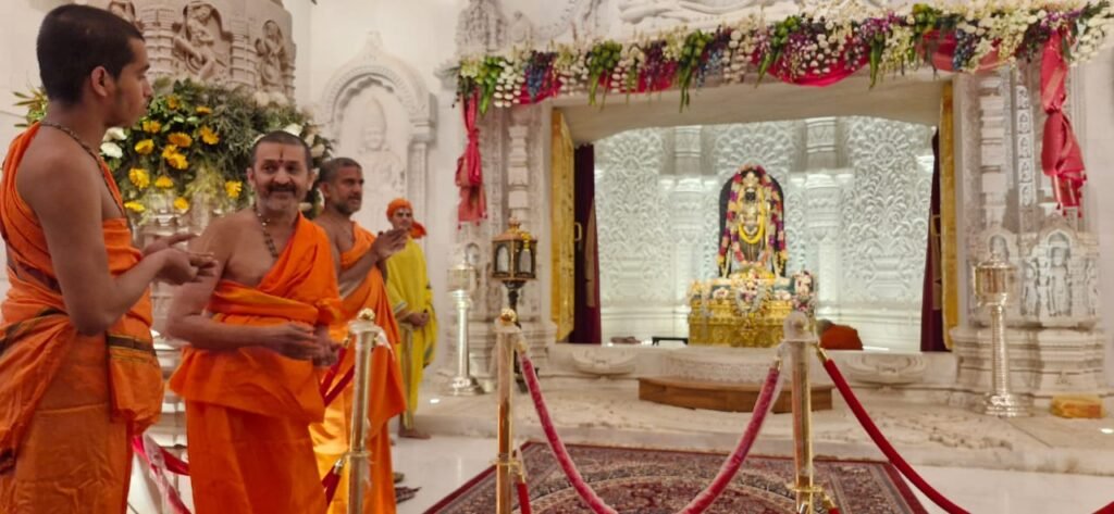 H.H. Sri Vidyadheesha Teertha Swamji, along with his disciple uttaradhikari H.H. Sri Vidyarajeshwara Teertha Swamiji visited Sri Ayodhya Kshetra and had darshana of Lord Sri Ramachandra. Peethadhipati of Sri Pejavara Matha and the trustee of Sri Ramajanma Bhumi Trust H.H. Sri Vishvaprasanna Teertha Swamiji extended traditional welcome to Sri Palimaru Swamiji.